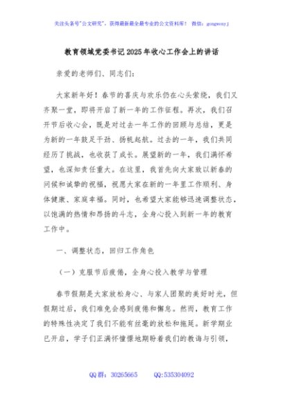 / 教育领域党委书记2025年收心工作会上的讲话