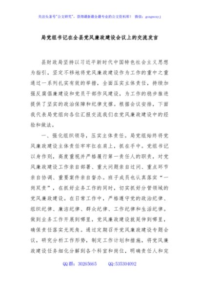 / 局党组书记在全县党风廉政建设会议上的交流发言