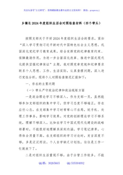 / 乡镇长2024年度组织生活会对照检查材料(四个带头)