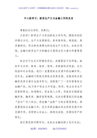 / 中心组学习:新质生产力与金融工作的发言