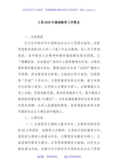 / X县2025年基础教育工作要点