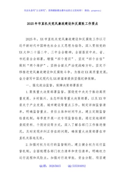 / 2025年市直机关党风廉政建设和反腐败工作要点
