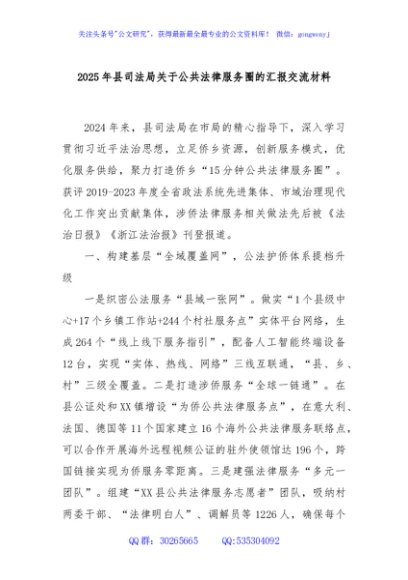 / 2025年县司法局关于公共法律服务圈的汇报交流材料