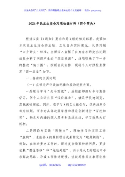 2024年领导干部个人民主生活会、组织生活会对照检查材料(四个带头)
