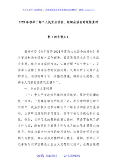 / 2024年领导干部个人民主生活会、组织生活会对照检查材料(四个带头)
