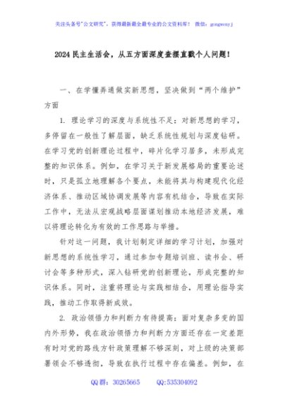 / 2024民主生活会,从五方面深度查摆直戳个人问题!
