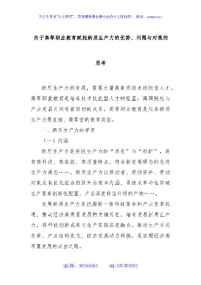 / 关于高等职业教育赋能新质生产力的优势、问题与对策的思考