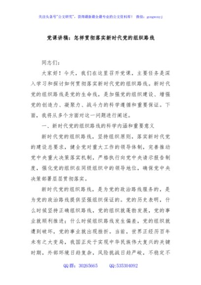 / 党课讲稿:怎样贯彻落实新时代党的组织路线