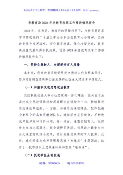 / 市教育局2024年度教育改革工作推进情况报告
