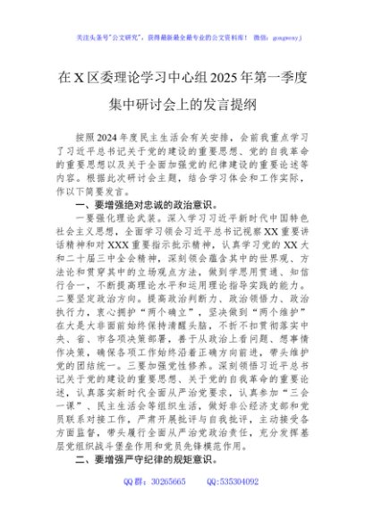 / 在X区委理论学习中心组2025年第一季度集中研讨会上的发言提纲