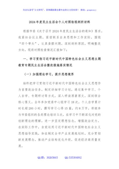 / 2024年度民主生活会个人对照检视剖析材料