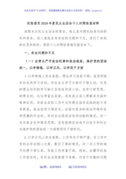 / 纪检委员2024年度民主生活会个人对照检查材料