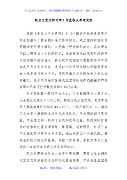 / 新成立党支部选举工作流程及参考文档
