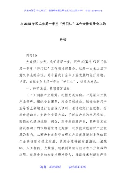 / 在2025年区工信局一季度“开门红”工作安排部署会上的讲话