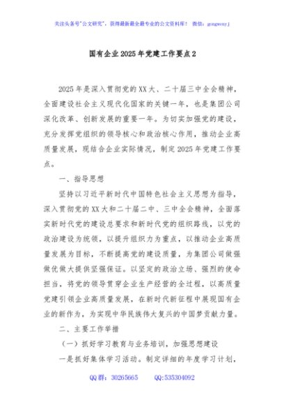 / 国有企业2025年党建工作要点2