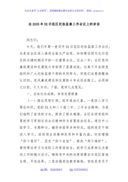 / 在2025年XX示范区纪检监察工作会议上的讲话
