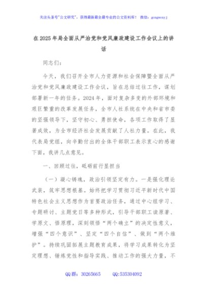 / 在2025年局全面从严治党和党风廉政建设工作会议上的讲话