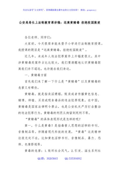 / 公安局局长上法制教育课讲稿:远离黄赌毒 拒绝校园欺凌