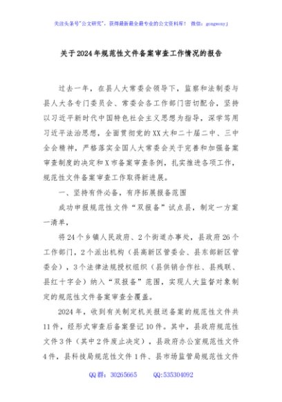 / 关于2024年规范性文件备案审查工作情况的报告