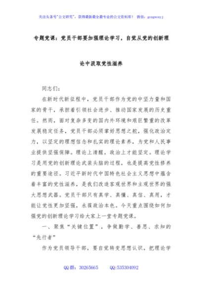 / 专题党课:党员干部要加强理论学习,自觉从党的创新理论中汲取党性滋养