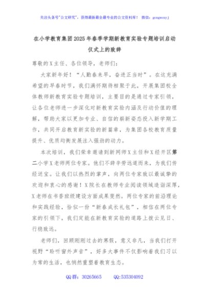 / 在小学教育集团2025年春季学期新教育实验专题培训启动仪式上的致辞