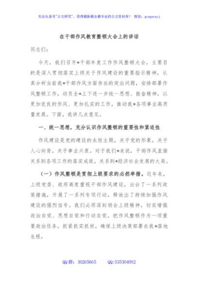 / 在干部作风教育整顿大会上的讲话