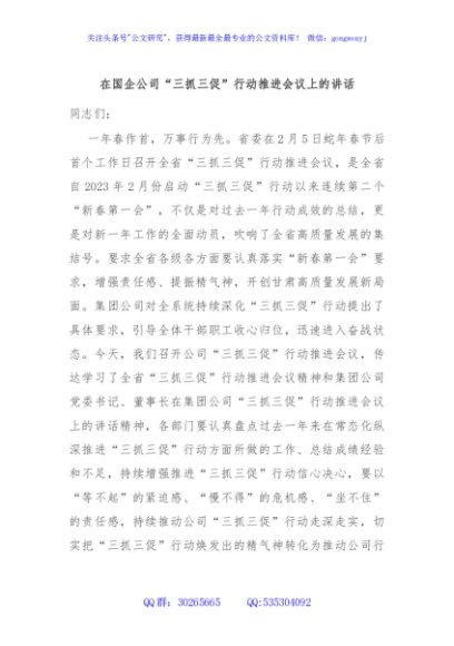 / 在国企公司“三抓三促”行动推进会议上的讲话