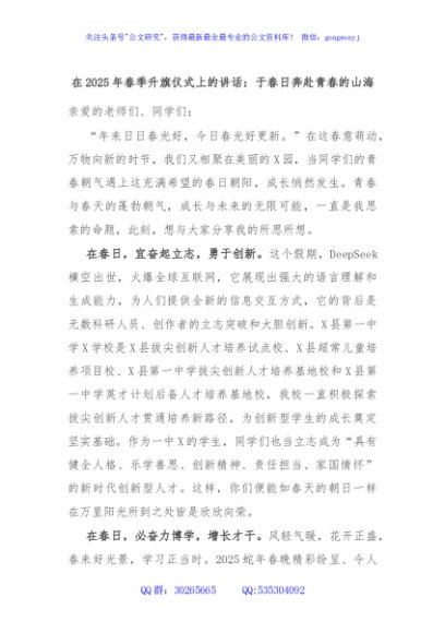 在2025年春季升旗仪式上的讲话:于春日奔赴青春的山海