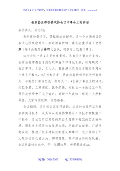 / 县政协主席在县政协会议闭幕会上的讲话