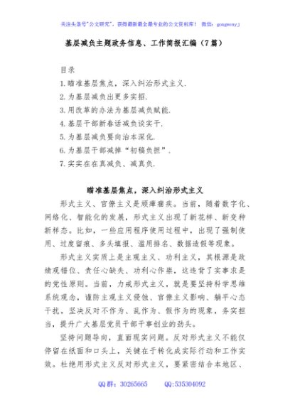 / (7篇)基层减负主题政务信息、工作简报汇编