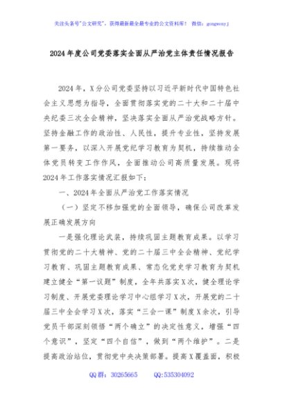 / 2024年度公司党委落实全面从严治党主体责任情况报告