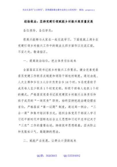 / 经验做法:坚持党建引领赋能乡村振兴高质量发展