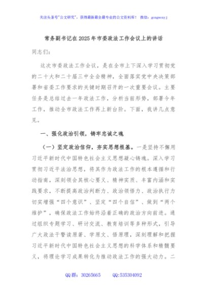 / 常务副书记在2025年市委政法工作会议上的讲话
