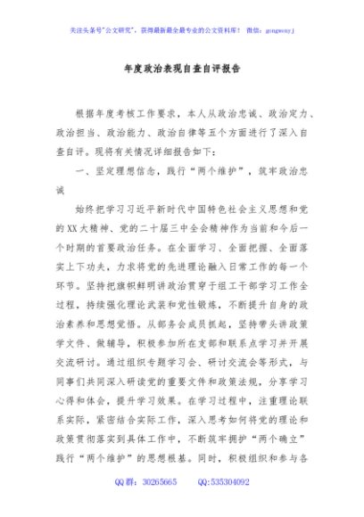 / 年度政治表现自查自评报告