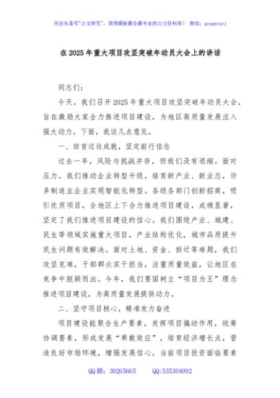 / 在2025年重大项目攻坚突破年动员大会上的讲话