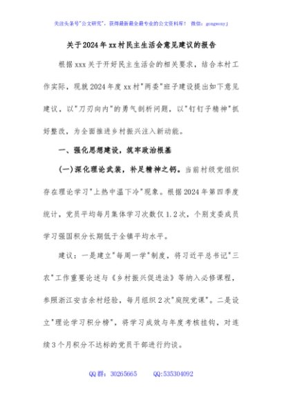 / 关于2024年xx村民主生活会意见建议的报告
