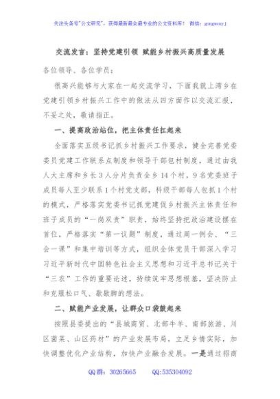 / 交流发言:坚持党建引领 赋能乡村振兴高质量发展