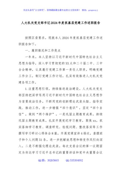 / 人大机关党支部书记2024年度抓基层党建工作述职报告