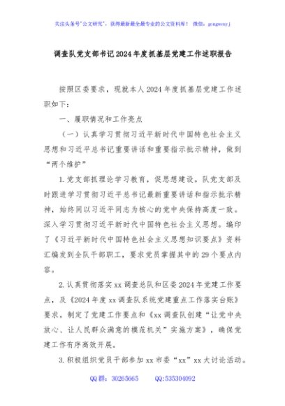 / 调查队党支部书记2024年度抓基层党建工作述职报告