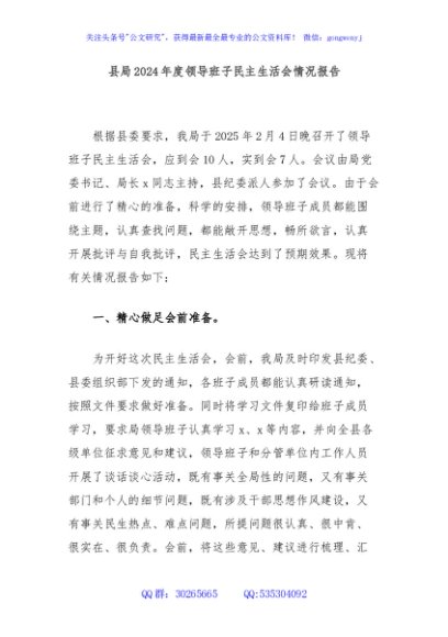 / 县局2024年度领导班子民主生活会情况报告