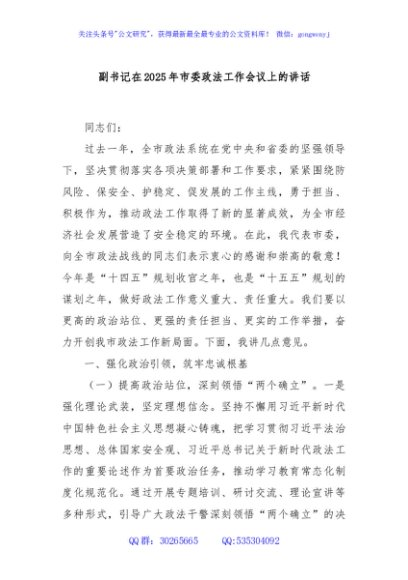 / 副书记在2025年市委政法工作会议上的讲话