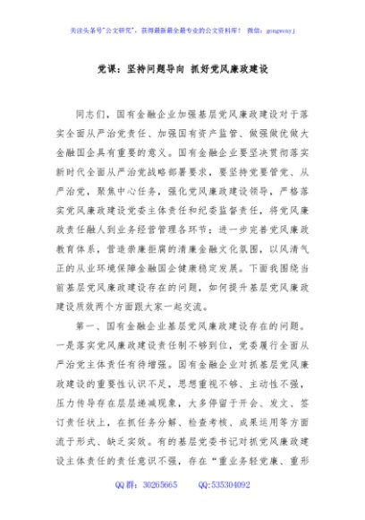 / 党课:坚持问题导向 抓好党风廉政建设