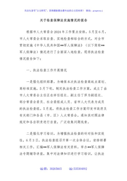 / 关于检查保障法实施情况的报告