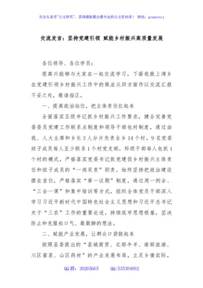 / 交流发言:坚持党建引领 赋能乡村振兴高质量发展