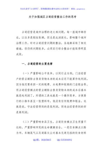 / 关于加强城区占道经营整治工作的思考