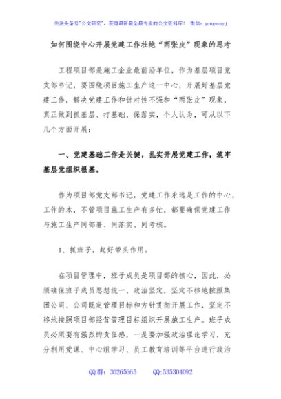 / 如何围绕中心开展党建工作杜绝“两张皮”现象的思考