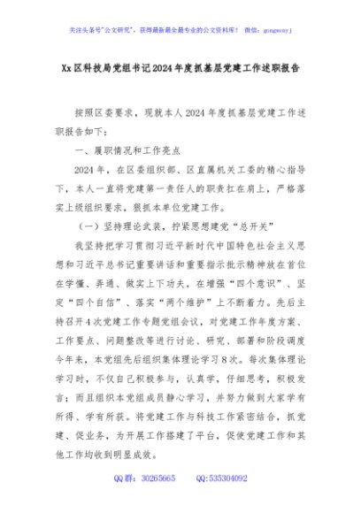 / Xx区科技局党组书记2024年度抓基层党建工作述职报告