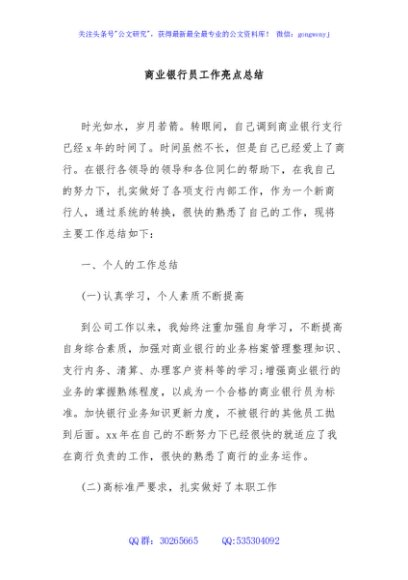 / 商业银行员工作亮点总结
