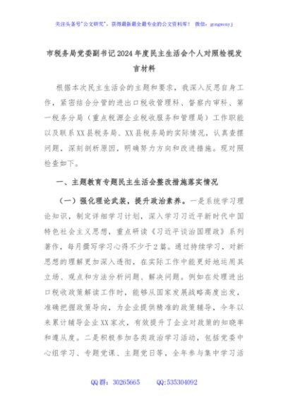 / 市税务局党委副书记2024年度民主生活会个人对照检视发言材料