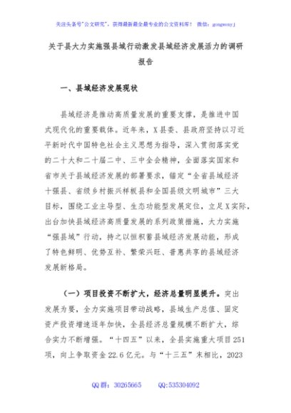/ 关于县大力实施强县域行动激发县域经济发展活力的调研报告